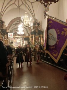Jak  każdego roku w Środzie Wielkopolskiej 27 grudnia uroczyście obchodzono  rocznicę wybuchu Powstania Wielkopolskiego 1918/1919. Tradycyjnie uroczystości rozpoczęły się w Bazylice, gdzie ks. kanonik Janusz Śmigiel odprawił Mszę Świętą.  Słowo Boże wygłosił ks. Michał Szremski. Po Mszy Świętej uczniowie Liceum Ogólnokształcącego w Środzie Wlkp. przedstawili inscenizację przysięgi 1. Ochotniczej Kompani Średzkiej złożonej w tej świątyni na ręce ks. Mieczysława Meissnera. W kruchcie Bazyliki nastąpiło odsłonięcie pamiątkowej tablicy upamiętniającej to wydarzenie. Po zakończeniu uroczystości w Bazylice uczestnicy spotkali się na  Kwaterze Powstańców, gdzie po odśpiewaniu hymnu państwowego głos zabrali: poseł Tadeusz Tomaszewski, Burmistrz  Środy Wielkopolskiej Piotr Mieloch i w imieniu Zarządu Stowarzyszenia Rodzin Powstańców Wielkopolskich Tomasz Pawlicki. Na zakończenie uroczystości uczestnicy złożyli wiązanki kwiatów.   W uroczystości uczestniczyły liczne poczty sztandarowe, mieszkańcy Powiatu Średzkiego, przedstawiciele zakładów pracy, organizacji pozarządowych, uczniowie średzkich szkół i harcerze. Oprawę uroczystości zapewnili uczniowie klas wojskowych Zespołu Szkół Rolniczych. Nie mogło zabraknąć na tych uroczystościach delegacji naszego Stowarzyszenia.